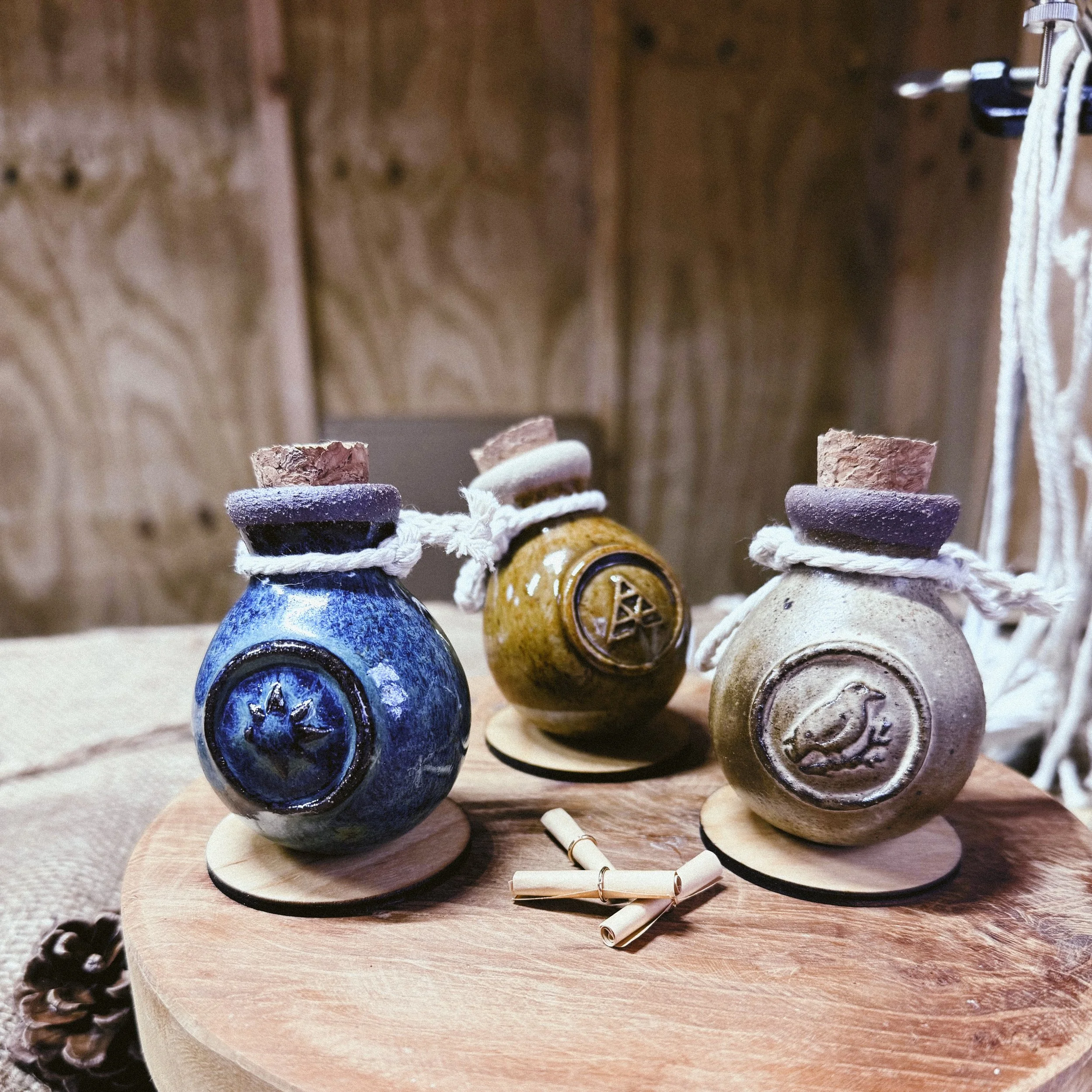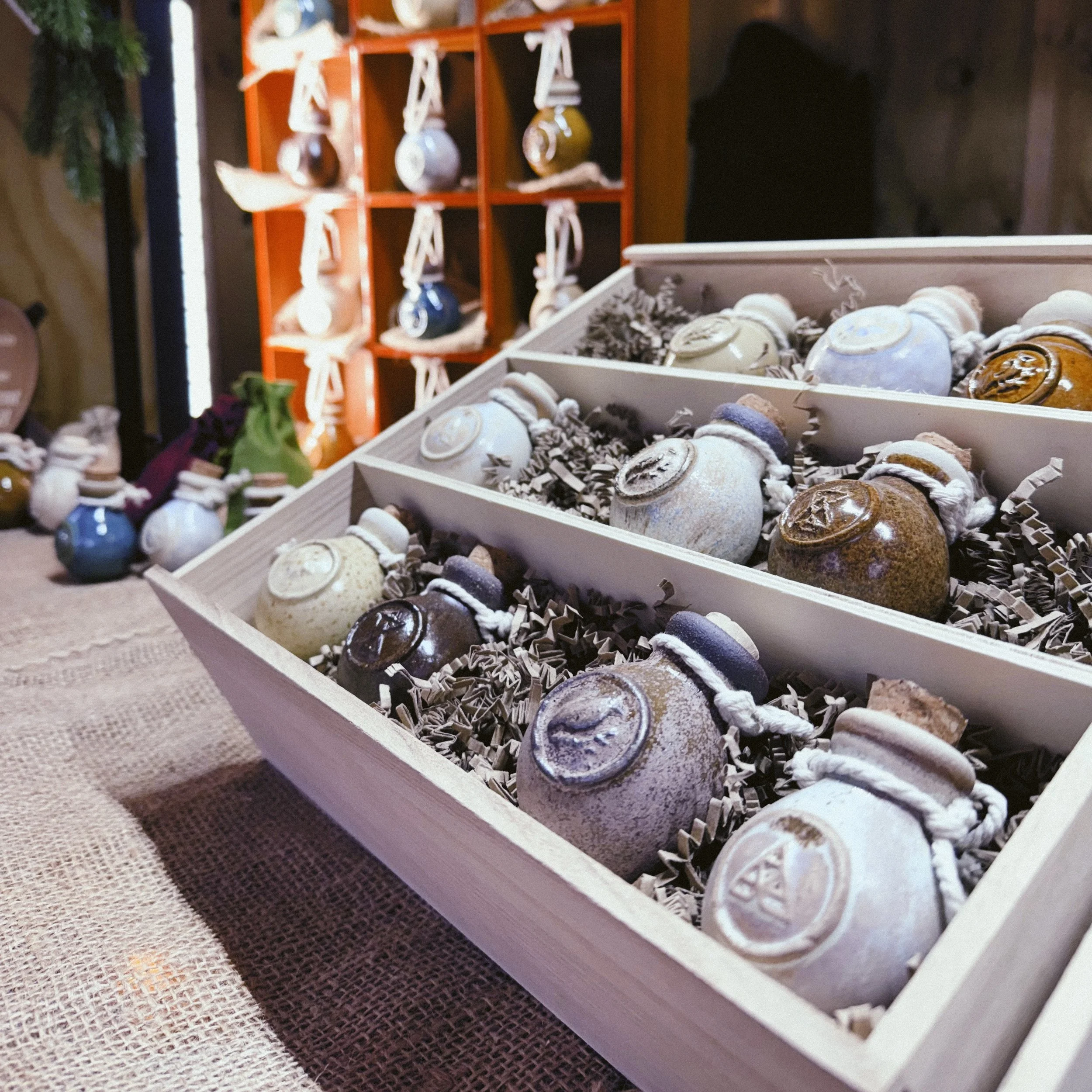Cet hiver 2025, une série de fioles à vœux en grès a été présentée presque par hasard sur le marché de Noël du château de Springuel, à Huy.